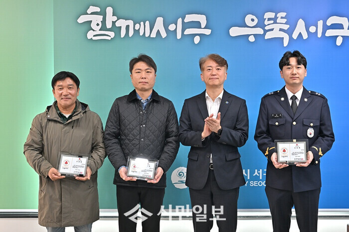 서구청은 5일 구청에서 고(故) 김신자 씨 유족, 해양경찰관 문호준 씨, 서창동 자생단체 연합회 ‘서창애온’이 함께한 ‘나눔리더100(Giving Leaders Club)’ 가입식을 열고 감사의 뜻을 전했다.