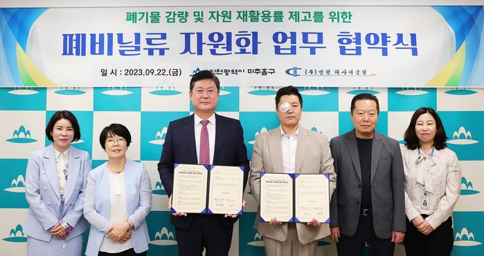 [인천=문찬식 기자] 인천 미추홀구가 최근 구청장실에서 (주)인천리사이클링과 폐비닐 재활용 촉진 및 자원순환을 위한 '폐비닐류 자원화 업무협약'을 체결했다.