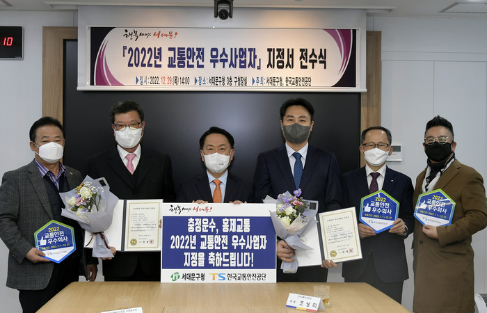 [시민일보 = 홍덕표 기자] 서울 서대문구(구청장 이성헌)는 지역내 마을버스 업체인 충정운수와 홍제교통이 최근 국토교통부와 한국교통안전공단에서 선정한 '2022년 교통안전 우수사업자'로 선정됐다고 2일 밝혔다.
