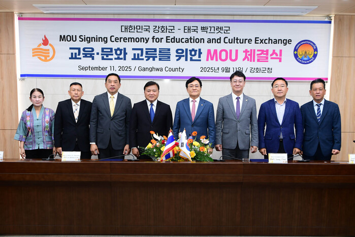 [인천=문찬식 기자] 인천 강화군이 11일 태국 논타부리주 빡끄렛군과 교육·문화 교류 협력을 위한 양해각서(MOU)를 체결했다.