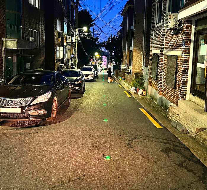 | ▲ 안심귀가 바닥조명(도로표지병) 설치 전경. (사진=양천구청 제공) |