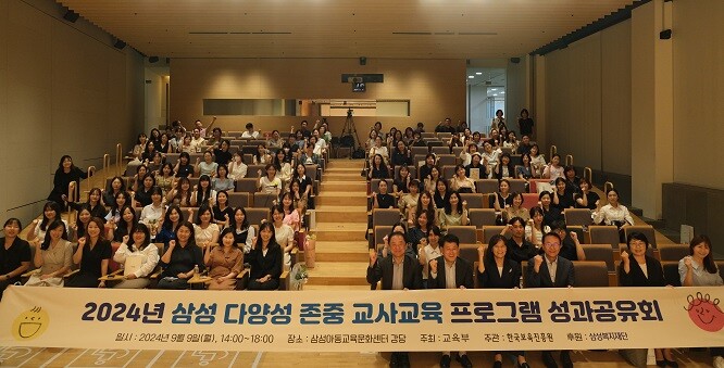 이번 성과공유회는 삼성복지재단과의 민관협력을 통해 진행한 ‘삼성 다양성 존중 프로그램’ 교사교육의 성과를 공유하고, 교육 현장에 다양성 존중의 가치를 확산하기 위해 마련된 자리였다. 행사는 한국보육진흥원 나성웅 원장의 개회사와 삼성재단 류문형 부사장의 축사로 시작하였으며, 교육을 진행한 서경대 아동학과 신혜원 교수와 배화여대 아동보육과 이윤선 교수, 그리고 교육에 참여한 원장과 교사 약 150명이 참석해 자리를 빛냈다.