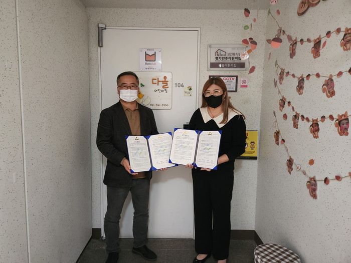 충남 아산시 온양5동이16일 다올어린이집과 복지사각지대 발굴 및 맞춤형 서비스 연계를 위한 명예 사회복지공무원 업무협약을 맺었다. 명예 사회복지공무원이 발굴한 위기가구에는 생계비 등의 긴급지원과 건강관리, 돌봄 등이 제공된다. 사진은 협약식에서 관계자들이 기념촬영을 하는 모습. (사진제공=아산시청)
