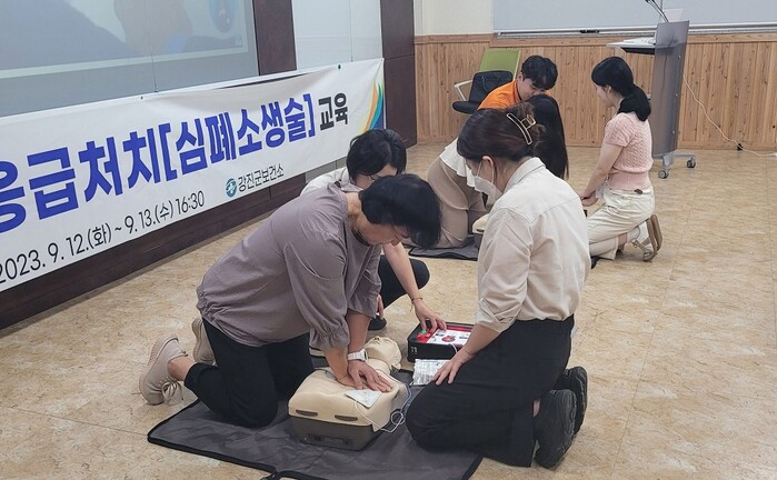 [강진=정찬남 기자] 전남 강진군이 지난 12일, 13일 이틀에 걸쳐 강진군보건소 대회의실에서 응급처치 심폐소생술 교육을 실시했다.
