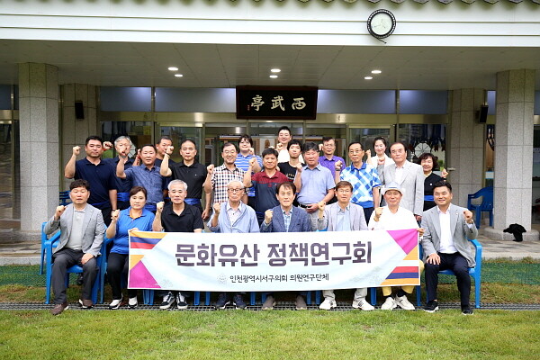 문화유산 정책연구회는 국내·외 현장 방문과 문헌조사를 통해 다양한 문화유산 관리 및 활용사례를 살펴보고, 이를 바탕으로 서구 문화유산의 보존 및 발전방안을 연구하고자 서구의원 4명, 자문위원 12명으로 구성된 의원연구단체이다.