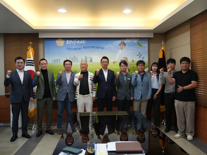 [평택=오왕석 기자] 평택시의회 강정구 의장은 지난 2일 시의회 의장실에서 안정리 디자인거리 조성사업과 관련하여 관계자들과 간담회를 가졌다.