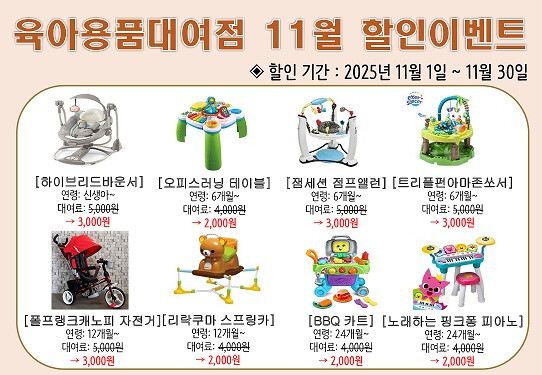 | ▲ ◆ 11월 육아용품 및 대여료 반값 할인 |