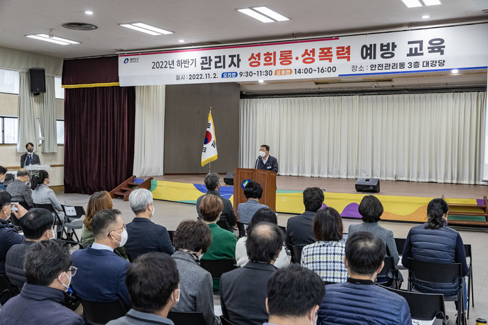직장 내 성비위 문제가 발생하는 것을 예방하고, 성평등한 조직문화를 조성하고자 마련된 이번 교육은 직급별로 알맞은 교육을 받을 수 있도록 나눠 실시됐으며, 1일에는 실무자들이, 2일에는 관리자들이 교육에 참여했다.