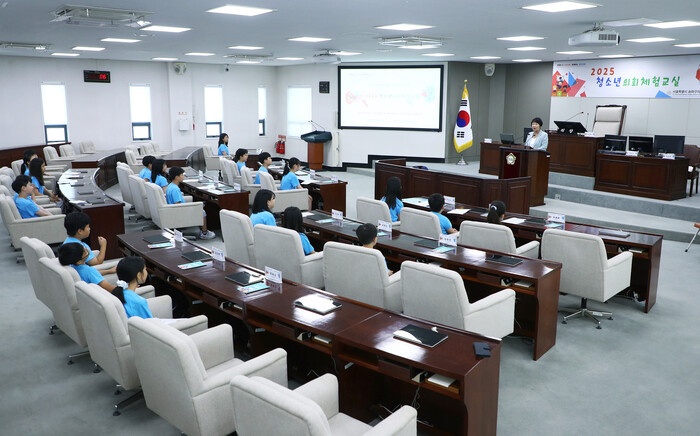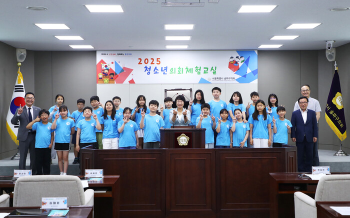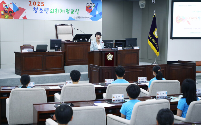 [시민일보 = 이대우 기자] 서울 송파구의회(의장 이혜숙)가 최근 송파구의회 4층 본회의장에서 서울가원초등학교 5학년 학생 22명을 대상으로 ‘2025년 청소년의회체험교실’을 개최했다.