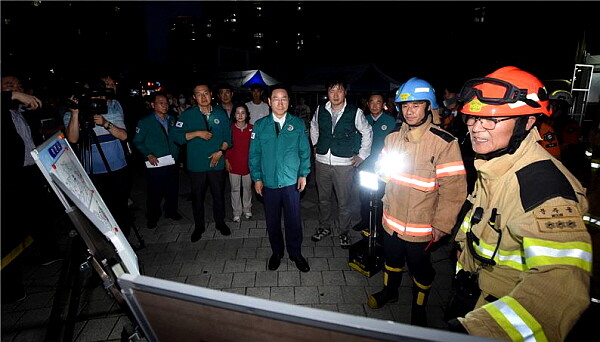 [인천=김형만 기자] 유정복 인천시장이 1일 늦은 오후 8시 10분, 같은 날 오전 발생한 서구 청라동 아파트 화재 현장을 찾았다. 화재 현장의 피해 상황을 점검하고 적절한 지원책을 마련하기 위해서다.