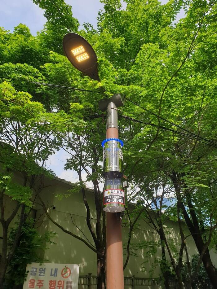 | ▲ 상도동마을마당 소공원에 위치한 포충기가 가동 중에 있다. (사진=동작구청 제공) |