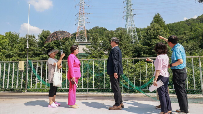 이후 한국전력 관계자들과 시는 청계산 일대 송전탑 현장 실사를 한 뒤 문원동 주민센터에서 송전탑 지중화 민관협의체의 주민대표들과 간담회를 했다.