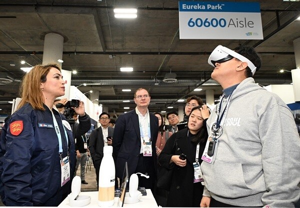 | ▲ 오세훈 서울시장이 9일 오후 13시 40분(현지 시각) 유레카파크 내 프랑스관을 방문해 업체 관계자로부터 제품에 대한 설명을 듣고 직접 체험해보고 있다. |