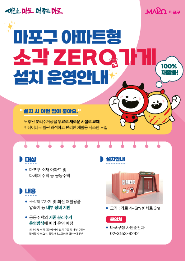 ‘아파트형 소각제로가게’ 신청을 원하거나 궁금한 점이 있는 관리사무소 및 주민은 구청 자원순환과로 문의하면 된다.