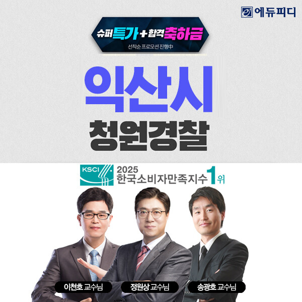 한편 에듀피디는 2025년 익산시 청원경찰 필기시험에 맞춰진 ‘이론정리+문제풀이+기출해설 특강’ 구성의 ‘합격패키지’ 강좌를 단기과정으로 오픈하고 강좌 할인 혜택과 합격 시 최대 ‘20만 원’의 축하금을 제공하는 ‘슈퍼특가+합격축하금’ 프로모션을 지원해 합격의지를 북돋을 예정이다.
