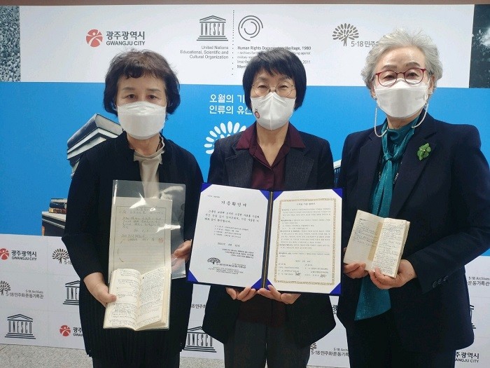 | ▲ 5‧18민주화운동기록관, 5‧18 관련 광주YWCA 상황이 담긴 기록물 3점을 안희옥, 영현숙 간사 두분에게 최근 기증받아 22일 자료기증협약 체결 / 사진=광주광역시 제공 |