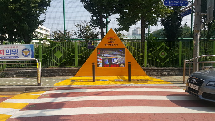 또한 ▲보호구역 내 과속 및 신호위반 단속 CCTV 설치(7곳) ▲태양광 LED 표지판 설치(20개) ▲옐로카펫 및 노란발자국 설치(40개) ▲바닥형 보행신호등 설치(12개) ▲보행신호 음성안내 보조 장치(20개) ▲혼용도로 보도 구분설치(1곳) ▲제한속도 하향(30km→20km/h)(3곳) 등 교통 안전장치를 확충할 계획이다.