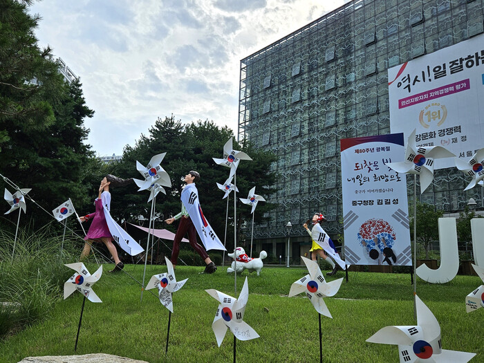 오는 31일까지 중구청 1층 로비에서는 광복 80주년 기념 전시회가 열리고, 광장에는 태극기 팝업 포토존이 마련된다.