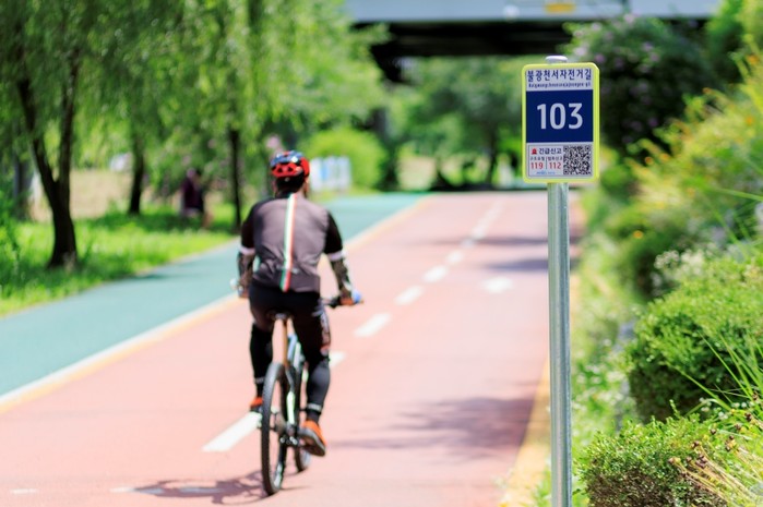[시민일보 = 박준우 기자] 서울 마포구(구청장 박강수)는 최근 홍제천과 불광천 일대 자전거길에 'SOS 원스톱 시스템'이 탑재된 도로명주소 형식의 기초번호판을 설치했다고 21일 밝혔다.