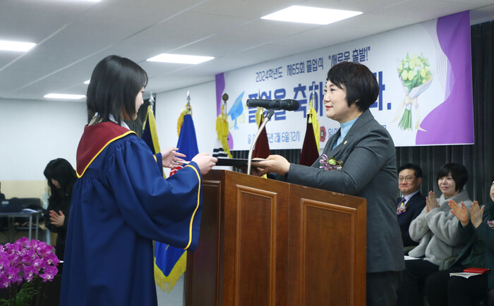 | ▲ 이혜숙 의장이 졸업생들에게 졸업장을 전달하고 있다. (사진=송파구의회 제공) |