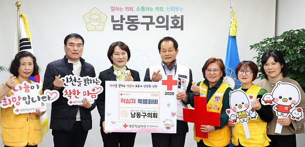[인천=김형만 기자] 인천 남동구의회가 1월 3일 의장실에서 대한적십자사 인천지사에 적십자 특별회비를 전달하며 따뜻한 나눔의 뜻을 전했다.