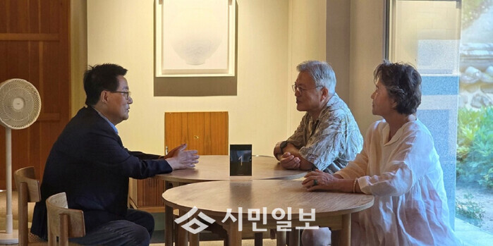 문재인 정부 국정원장으로서 긴밀한 관계를 유지해 온 박지원 국회의원도 2일 문 전 대통령 내외와 조찬을 함께하며 해남 방문 소회를 나누기도 했다.