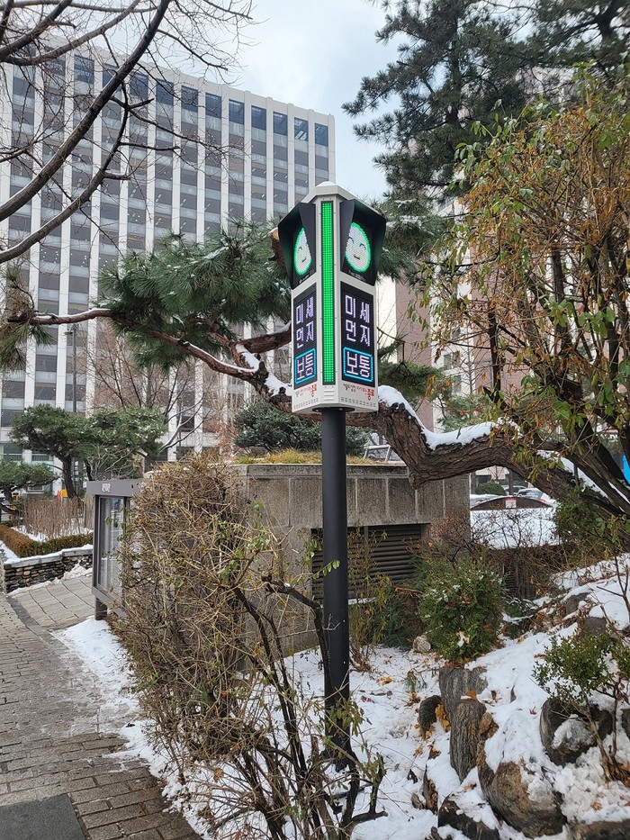 | ▲ 지난달 원서공원에 설치한 미세먼지 신호등. (사진제공=종로구청) |