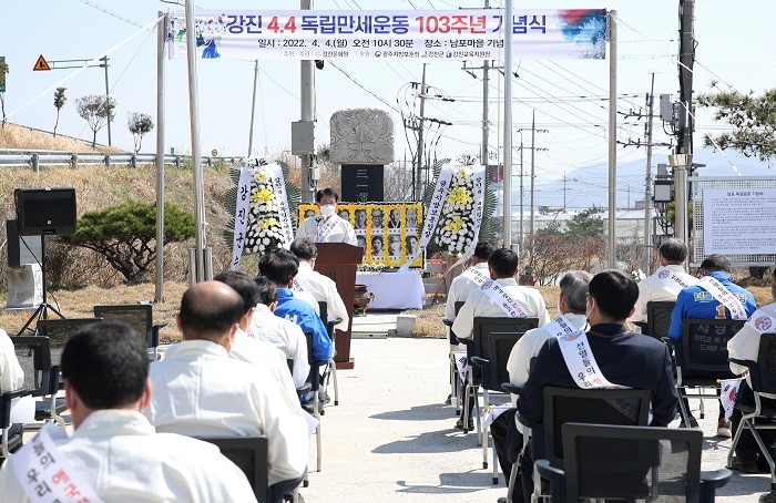이승옥 군수는 기념사에서 “강진 4·4 독립만세운동은 오늘날 우리 강진군민들 모두의 가슴속에 살아있는 이 지역의 역사이자, 자랑거리이다”며 “강진 4.4독립운동 정신을 기억하며 군민의 화합을 위해 다함께 노력해주시라”고 말했다.