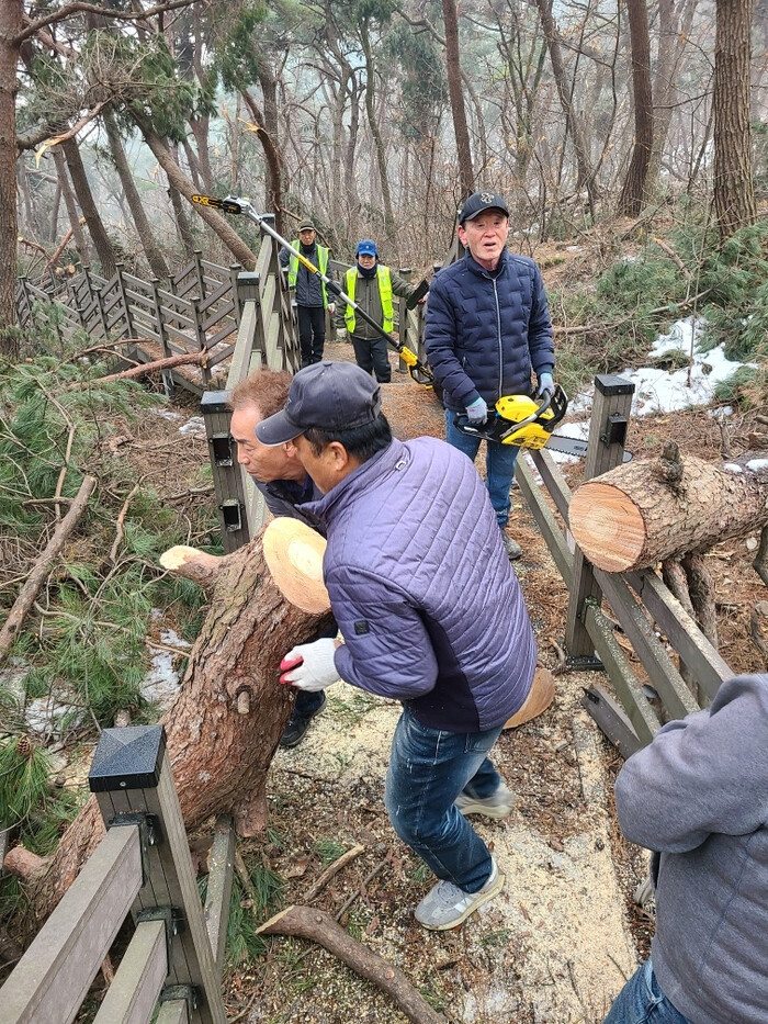 이날 정비 활동에는 지난 폭설로 쓰러지거나 부러져 태화산 등산로를 가로막고 있는 수목과 전도 위험이 있는 수목을 임시 정비해 등산로를 이용하는 등산객과 이용객들이 임시로 통행할 수 있도록 하고 이로 인한 안전사고를 예방하기 위해 추진됐다.