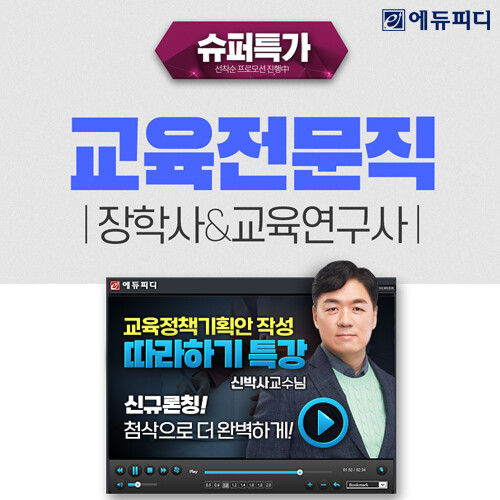 2025년 교육부 및 지방 교육청 교육전문직 시험 대비 ‘교육전문직 합격패키지’ 신규 인강의 상세 커리큘럼과 무료 샘플강의는 에듀피디 홈페이지에서 확인 가능하다.