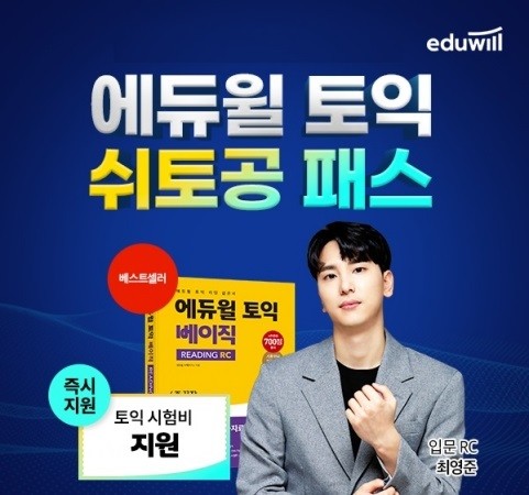 [시민일보 = 여영준 기자] 종합교육기업 에듀윌은 최신 토익 공식 인강을 무제한 수강할 수 있는 '쉬토공 패스'를 운영한다고 29일 밝혔다.