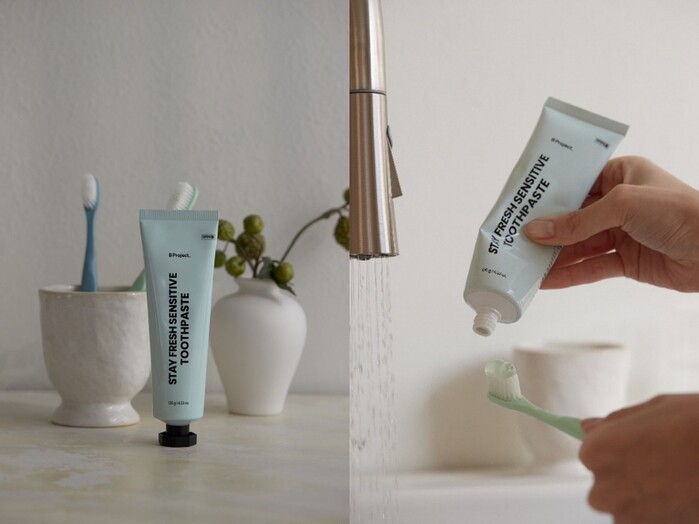 | ▲ 비프로젝트 ‘스테이 프레시 센서티브 치약’ (사진제공=올리브인터내셔널) |