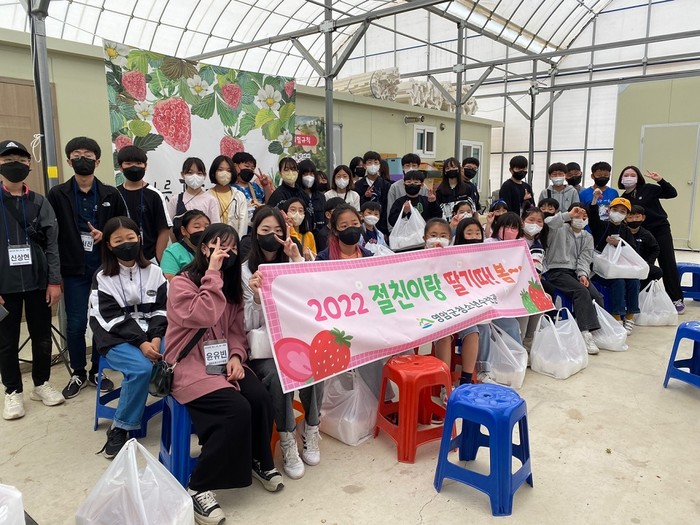 [영암=정찬남 기자] 전남 영암군이 지난 4월 30일 사회적 거리두기 해제 후 첫 야외 프로그램으로 “친한 친구와 함께 딸기수확 체험”을 진행했다고 밝혔다.