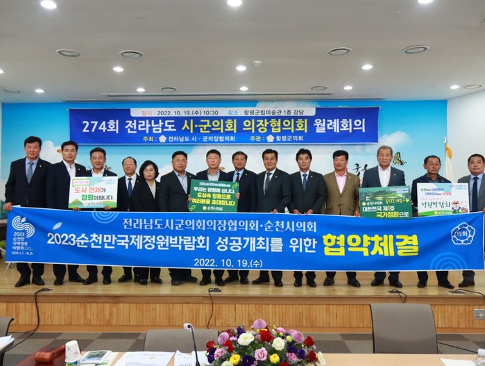 이에 시의회는 박람회 기간 중 전라남도시군의회의장협의회 행사 개최를 적극 지원하고 전남 관광지를 홍보하기로 했으며, 전라남도시군의회의장협의회는 정원박람회 성공 개최를 위한 홍보와 박람회 기간 전남 시·군 등과 교류 협력을 강화하기로 했다.
