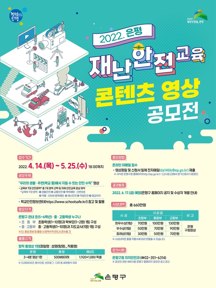 구 관계자는 “공모전을 통해 은평구민의 안전에 대한 경각심 제고와 학생들이 직접 참여하는 실효성 있는 안전교육의 계기가 되길 바란다”라고 전했다.