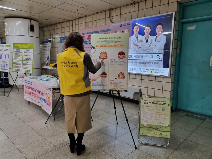 | ▲ 강북구 관계자가 지난해 수유역에서 아동권리 홍보 캠페인을 진행 중이다. (사진제공=강북구청) |