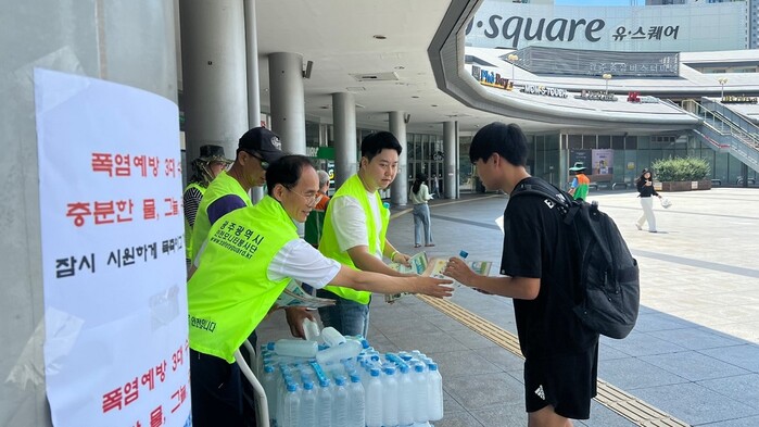 [광주=정찬남 기자] 광주광역시(시장 강기정)는 6일 유스퀘어에서 여름철 온열질환을 예방하기 위한 ‘여름나기 물나눔 캠페인’을 전개했다.