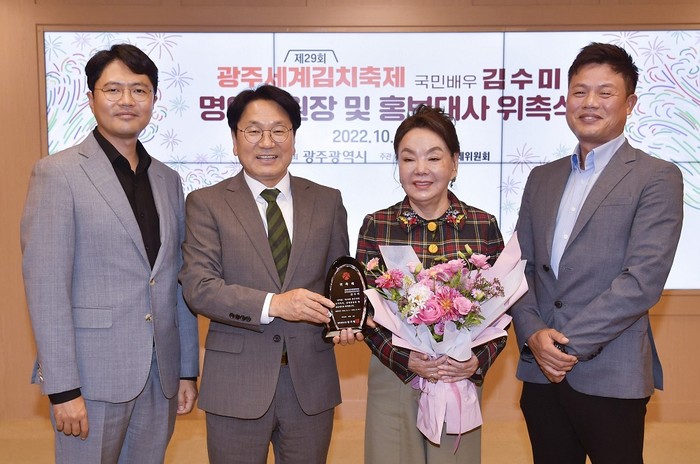 김수미 배우는 위촉식에서 “‘역시 김치 하면 광주’라는 말이 나올 수 있도록 전 세계에 광주김치를 알리고 대한민국 대표 축제가 될 수 있도록 홍보하겠다”며 “김치연구소와 박물관이 있고 매년 세계김치축제가 열리는 광주를 찾아주시는 국내외 손님들을 정성스레 맞이하겠다”고 전했다.