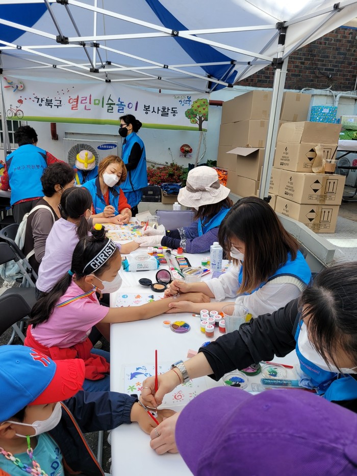 | ▲ 강북미술놀이봉사단이 가정의 달을 맞아 진행된 기념행사에서 봉사활동 중인 모습. (사진제공=강북구청) |