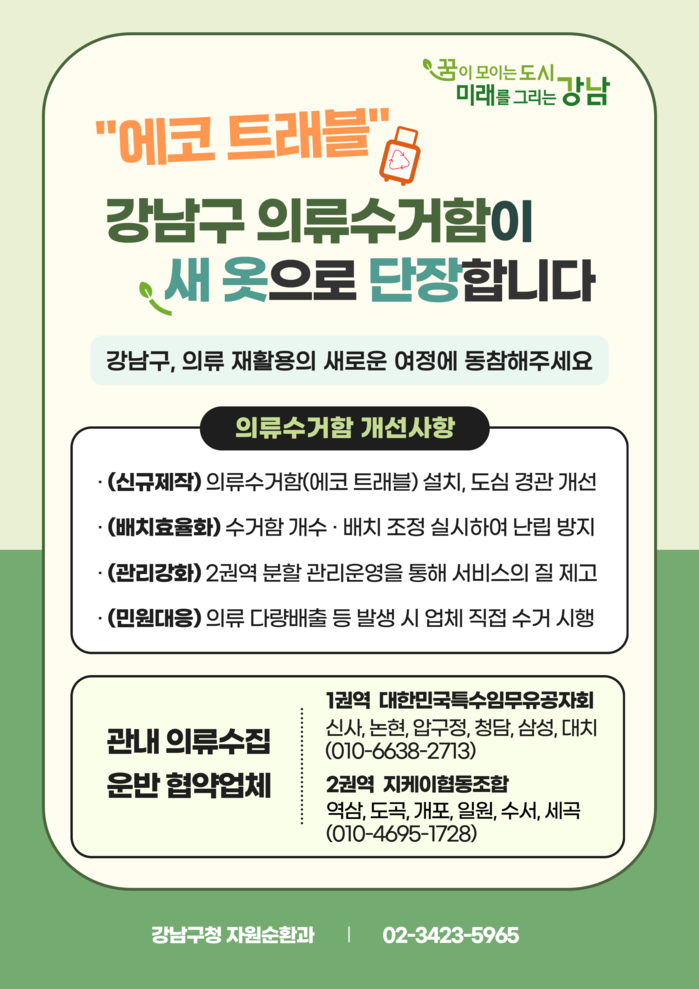 이에 강남구는 지난 5월 ‘서울특별시 강남구 의류수거함 설치 및 관리 조례’를 제정해 법적 기반을 마련하고, 운영체계를 전면 재정비했다.