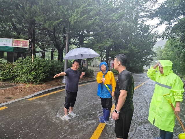 폭우가 쏟아지는 가운데 나동연 양산시장은 19일 새벽 5시 30분부터 직접 현장점검에 나섰다. 나 시장은 내원사 인근과 수위가 높아진 삼계교, 양산천 둔치, 남양산IC 등 주요 우려 지점을 차례로 점검했다. 현장점검을 마친 나 시장은 재난안전대책본부 상황실로 출근해 실시간 기상현황과 피해상황을 보고받으며 현장 대응 직원들을 격려했다.