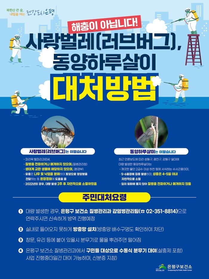 구는 주민들이 사랑벌레와 동양하루살이에 대해 올바르게 대처할 수 있도록 블로그, SNS 등에 대처법을 게시했다.