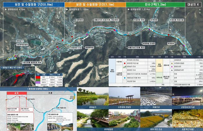 이번에 수립된 수생태계복원계획에 따르면, 농업기술센터에서 이배재터널 입구까지 3.2㎞ 구간을 ▲보전·수질정화 구간 ▲친수구역으로 구분하고, 생태 호안 조성, 여울 조성, 생태탐방로 설치 등을 통해 자연과 사람이 함께하는 생태하천으로 재탄생시킬 계획이다.
