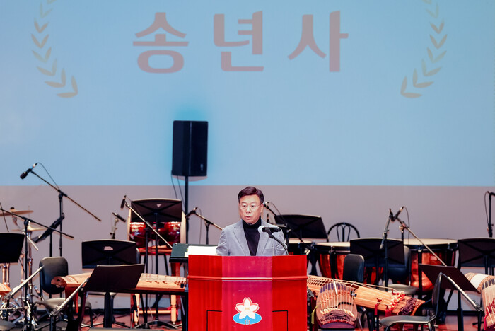 이날 종무식은 직원 인공지능(AI) 경진대회 최우수 수상작 발표와 송년 동영상 시청, 시립 예술단의 축하공연 등으로 진행됐다.