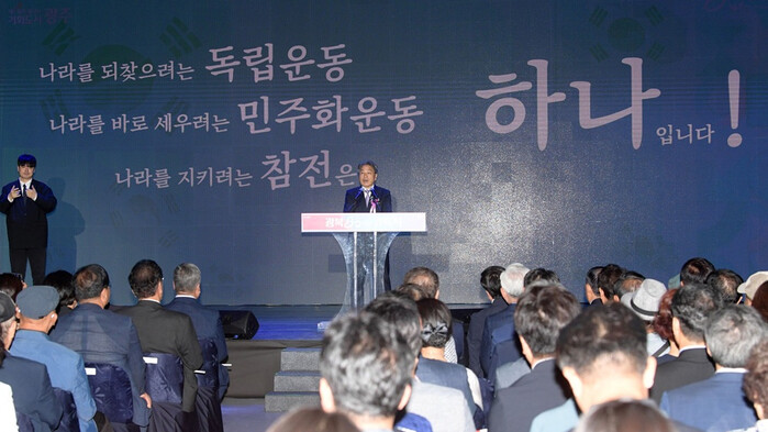 경축식에는 강기정 시장을 비롯한 고욱 광복회광주시지부장, 신수정 광주시의회 의장, 양금덕 할머니, 오월어머니집 어머니, 광주형 통합돌봄 수행기관, 창업가, 대학생, 마을활동가 등 시민이 함께해 광복의 의미를 되새겼다.