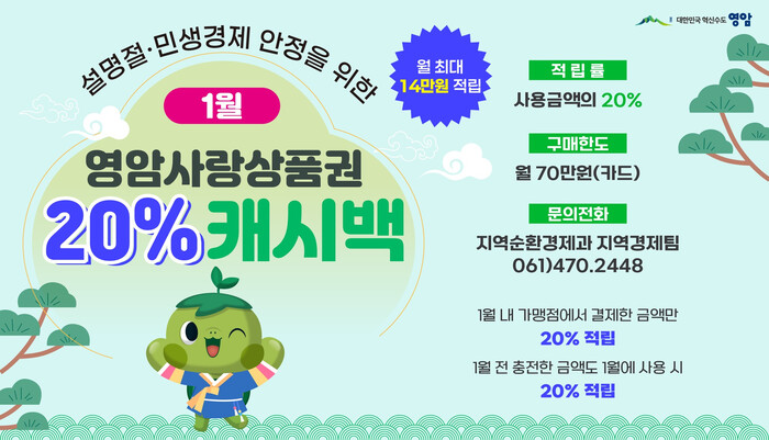 먼저 군은 지역 소비 진작을 위해 영암사랑상품권을 전년 대비 100억원 확대 발행할 계획이다.