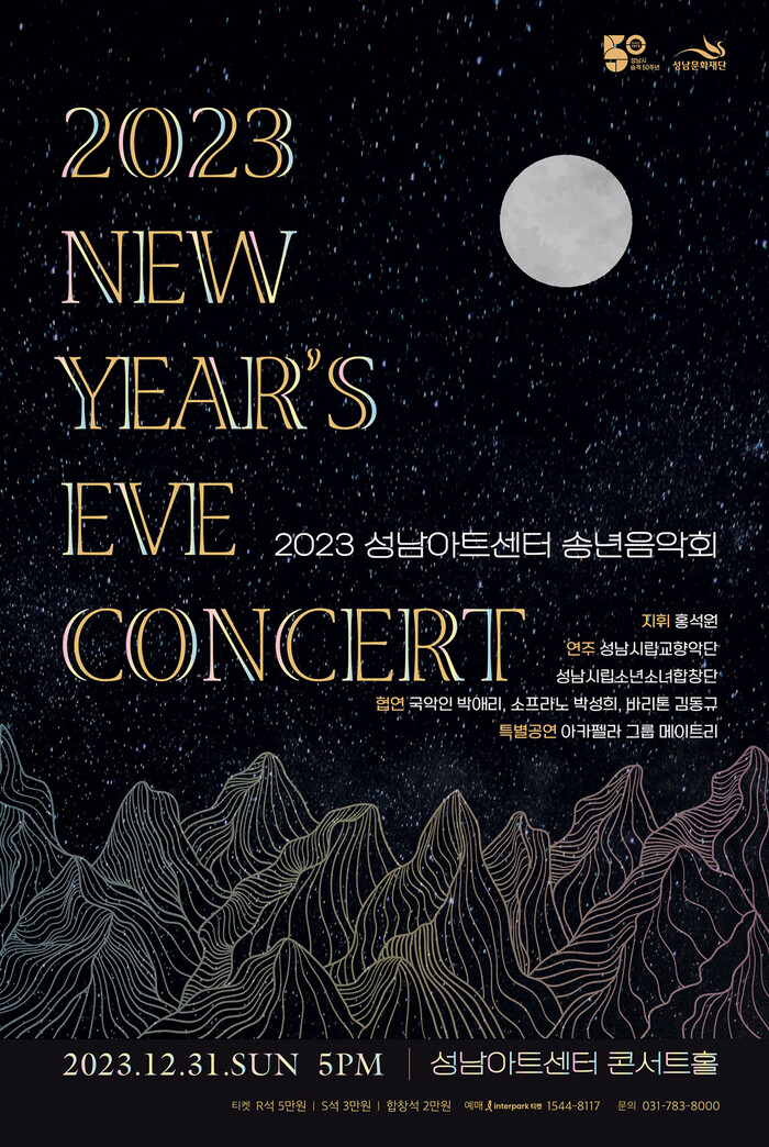 이번 ‘2023 성남아트센터 송년음악회’는 지휘자 홍석원이 이끄는 성남시립교향악단이 새해의 희망과 환희의 메시지를 전하는 클래식 프로그램을 선보이는 한편, 소프라노 박성희, 바리톤 김동규, 국악인 박애리가 참여해 클래식부터 국악까지 다채로운 무대를 선사할 예정이다.