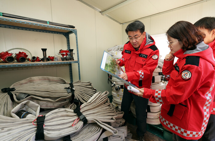 오승록 서울 노원구청장이 최근 수락산 내 산불 취약지역 현장 점검을 실시했다. 현장 점검은 관계부서 직원들 및 산불전문진화대원과 함께 도보로 산불 발생 가능성이 높은 취약 지역을 중점적 살피고, AI 기반 산불감시플랫폼과 연계한 드론 점검도 병행했다. 사진은 오 구청장이 수락산 현장점검을 하는 모습. (사진=노원구청 제공)