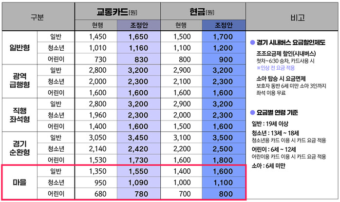 | ▲ 대중교통과-경기도 시내‧광역버스, 성남시 마을버스 요금 인상표 |