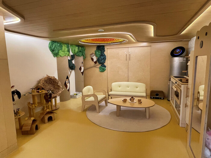 ‘숲속 상상마을’은 자연의 소리와 아늑한 분위기 속에서 아이들이 상상놀이와 역할놀이를 즐기며 감성을 키울 수 있도록 만들어졌다. 이밖에도 숲을 주제로 한 다양한 공간에서 아이들은 창의력과 표현력을 키우고, 이를 통해 감성·신체·사회성 발달을 동시에 이끌어낼 수 있다.